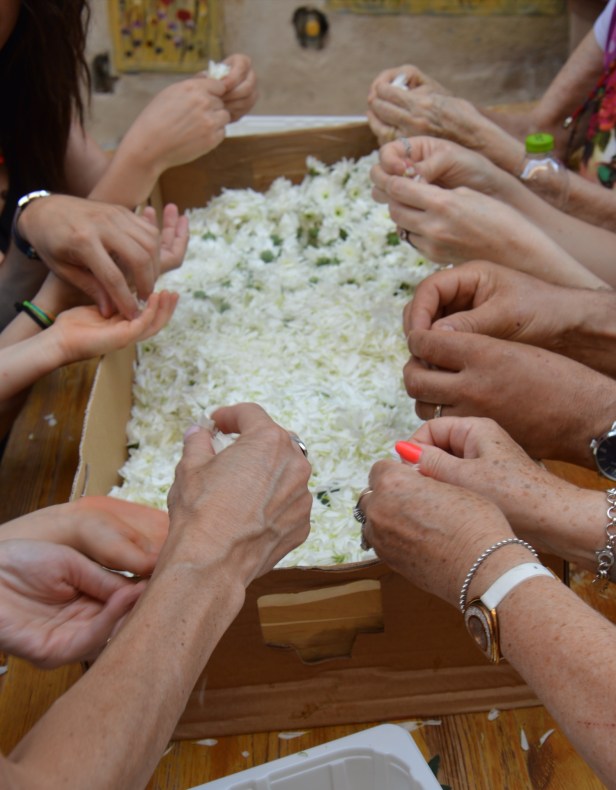 Tra le fasi preliminari più importanti e impegnative dell’evento ci sono la ricerca e la raccolta di fiori e poi la mondatura, la selezione e la conservazione dei petali. In ogni stagione vengono raccolti i fiori e le erbe del Monte Subasio e dell’Appennino umbro-marchigiano; si tolgono pazientemente i petali che vengono gelosamente conservati.