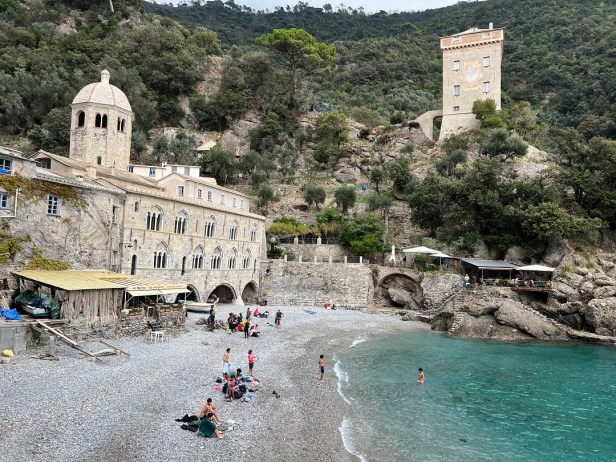 Il terzo giorno partenza sempre col treno, in direzione Camogli e traghetto verso la bellissima abbazia di San Fruttuoso, un antico monastero risalente all’VIII secolo, quando Prospero, vescovo di Tarragona, per sfuggire all’invasione araba della Spagna, si rifugiò nella baia costruendovi una piccola chiesa per conservare le reliquie del martire san Fruttuoso. Un luogo dalla storia incredibile la cui proprietà è stata della famiglia Doria, dal XIII secolo, che poi ha donato tutto il complesso monumentale nel 1983 al FAI (Fondo Ambiente Italiano). Il luogo è visitabile e conserva i reperti archeologici ritrovati durante il restauro del complesso: resta nel cuore l’incantevole spiaggia antistante l’abbazia, un luogo dalla storia millenaria che continua ad affascinare i visitatori che arrivano da tutto il mondo.